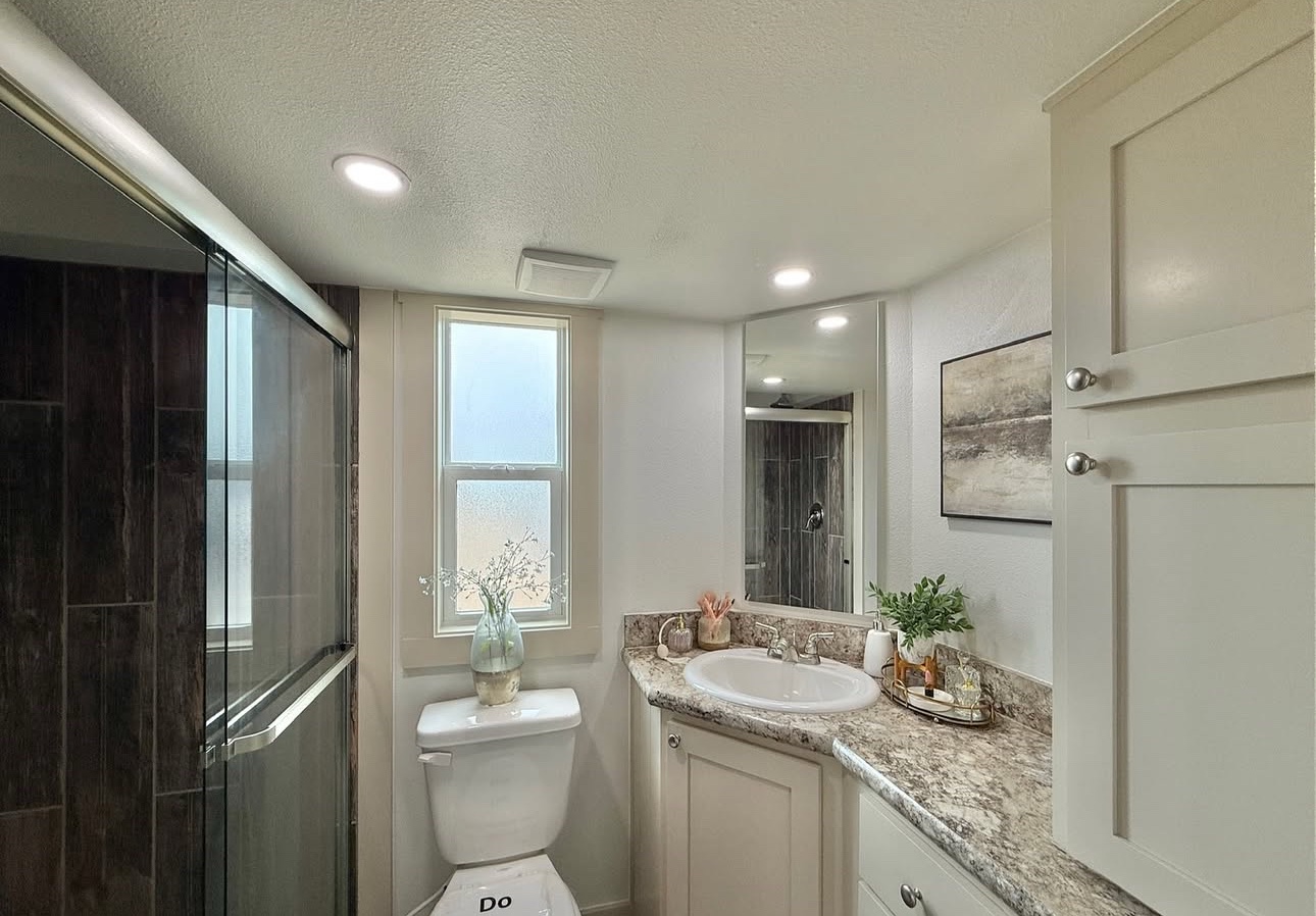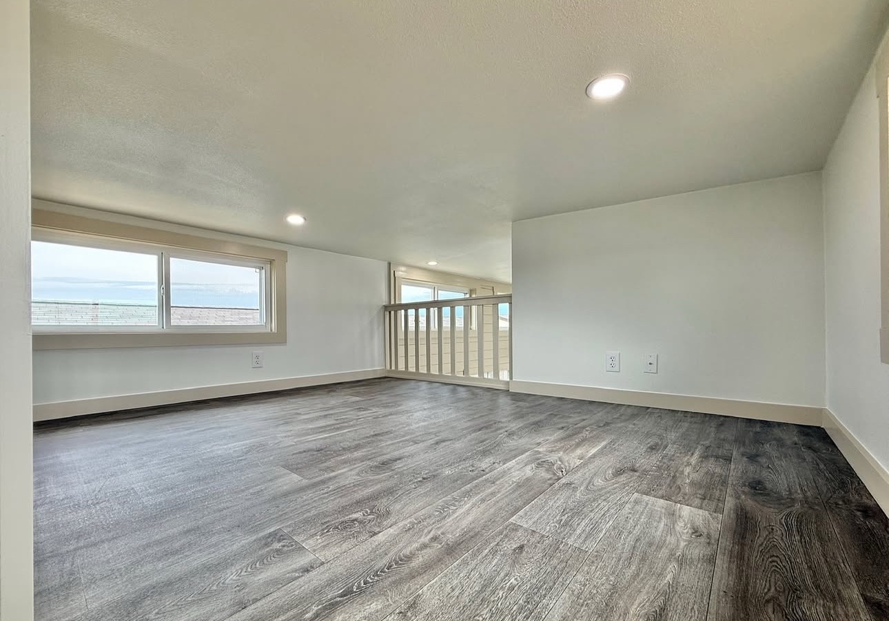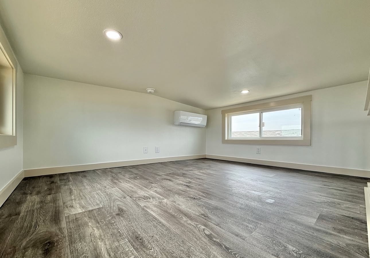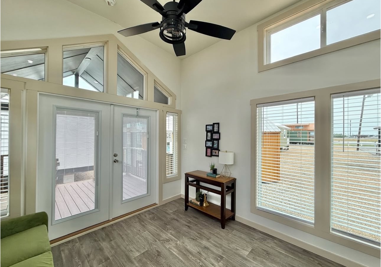 In this home you get double front doors, a large front porch, comfortable living area, dining nook, galley kitchen with full size appliances, space for a stackable washer/dryer, and a bedroom that will easily fit a queen size bed with a bay window that allows for a desk or dresser.