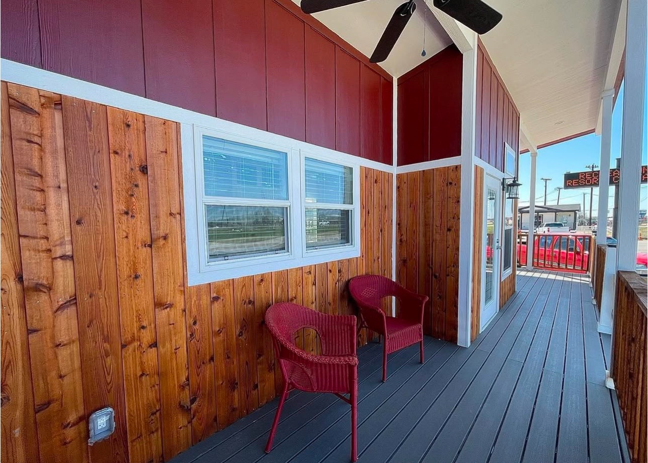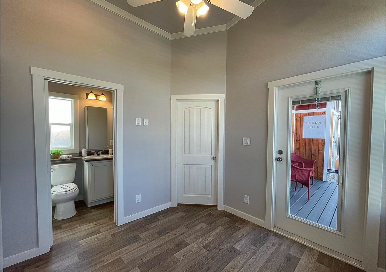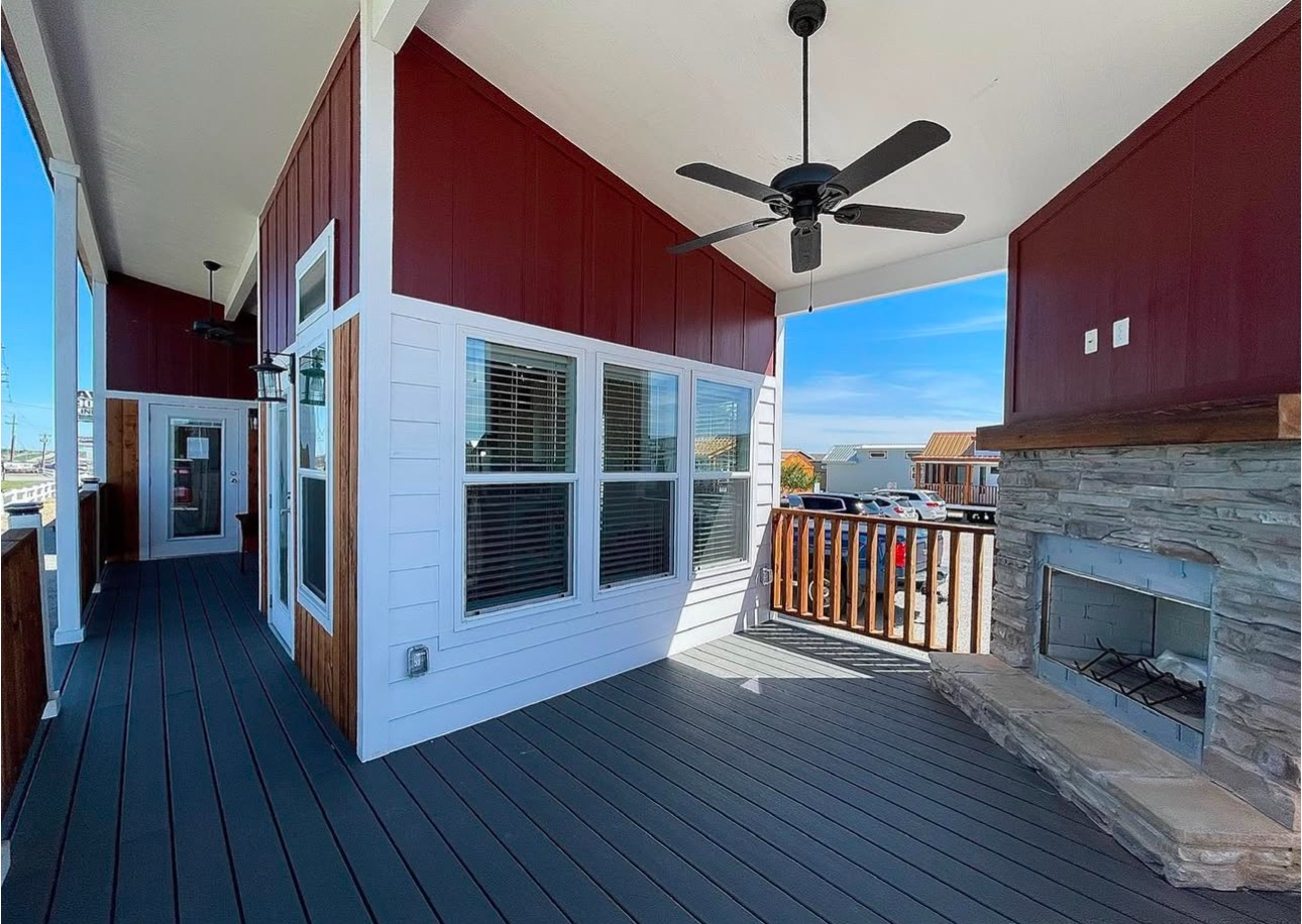This one is packed with some amazing features! The wrap around porch has been redesigned for a larger side porch off the kitchen, and we’ve added cedar accents and a beautiful rock exterior fireplace! The interior is equally impressive with white cabinets, shiplap accent walls, tall mono-sloped ceilings, tile shower and a king sized bedroom with double barn door closets and access to the side porch!
