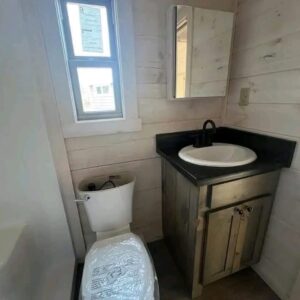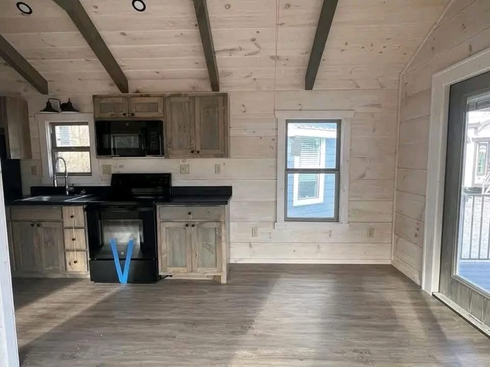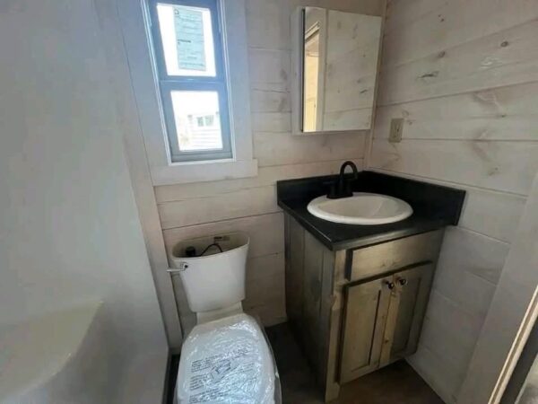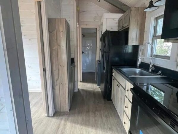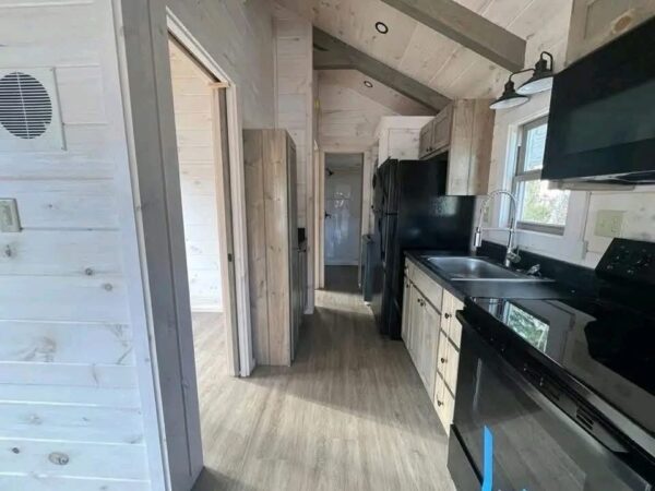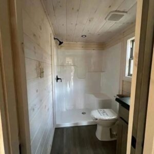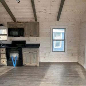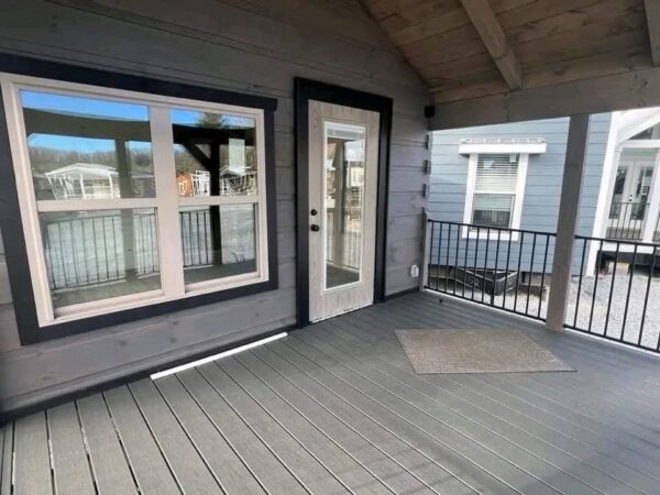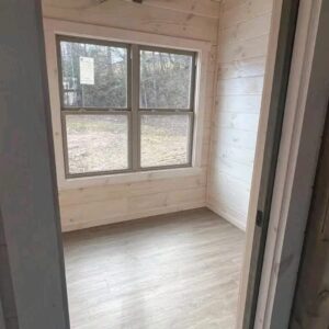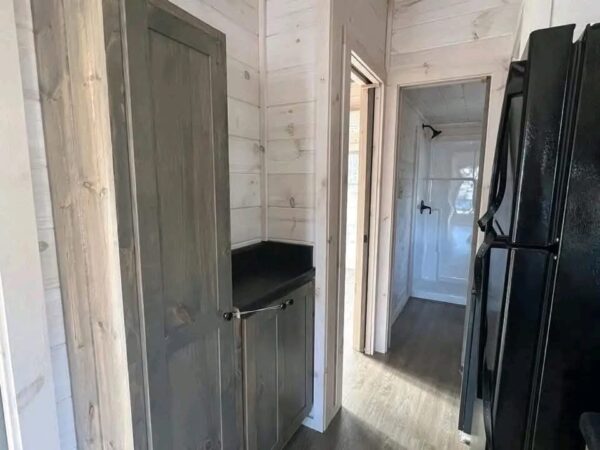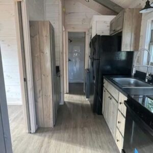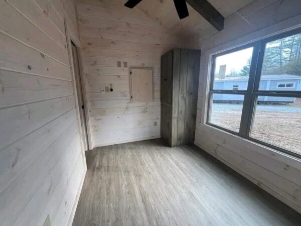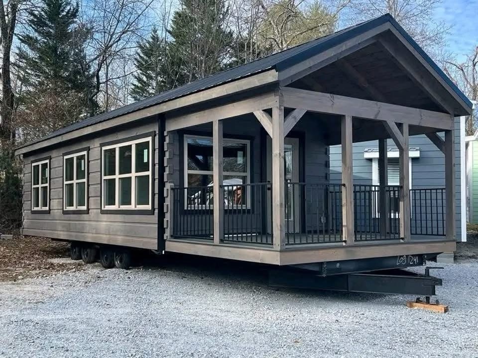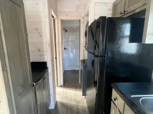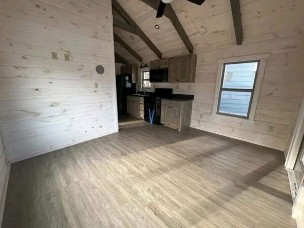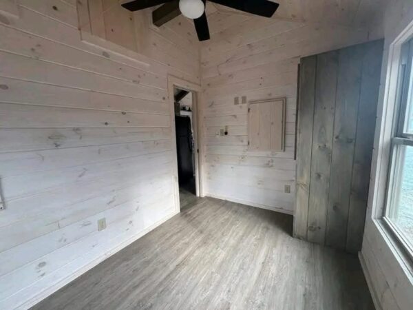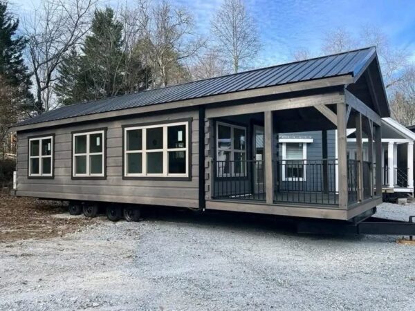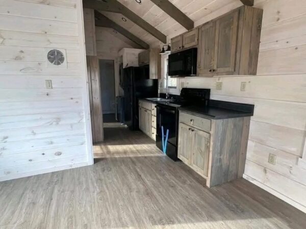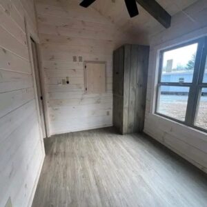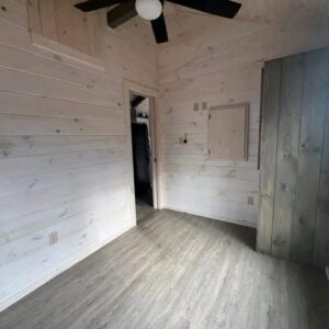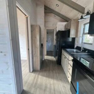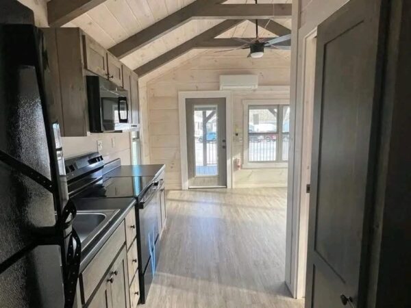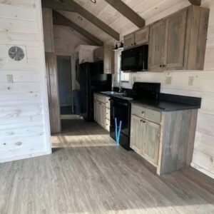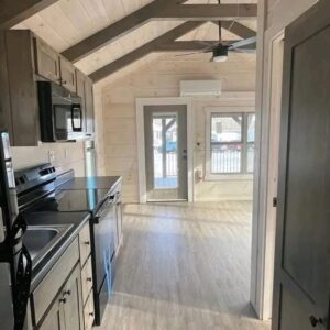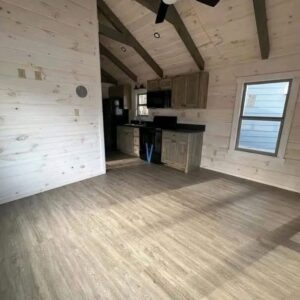 This Fox model tiny home is a 496 square feet, 2 bedroom, 1 bath RV park model that comfortably sleeps 6 people.