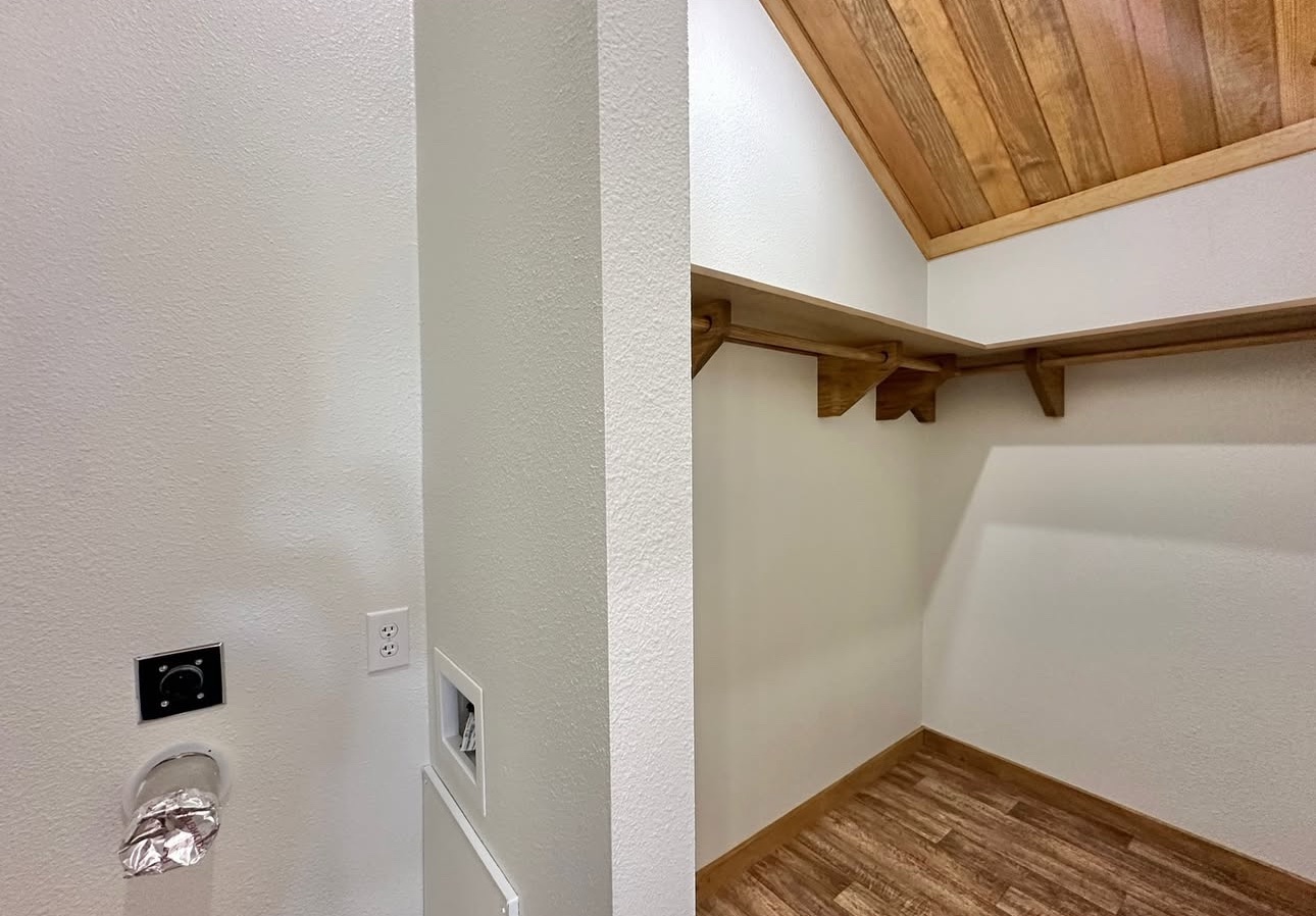 Check out the walk-in closet in the bedroom with a space for your stackable washer & dryer.